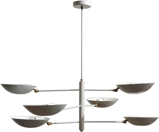 - About the product This is a pendant mid Century brass sputnik chandelier starburst light fixture. With 6 lamp shades were the light bulb is mounted upward with lamp inside. That gives a indirect light. This article measure 30” height 48” in diameter. We use 2 blue counter balls to this lamp. Different colors on request. 8W to 15w max recommended by us. Light bulbs are not included. All our light fixture are crafted by hand. This particular chandelier has been made with Brass material and metal, minor variations in finish are an inherent characteristic of such material and add to the beauty and uniqueness of the product.