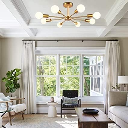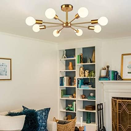 Modern Sputnik Chandeliers 8-Light Brass Mid Century Light Fixture Flush Mount Ceiling Light Pendant Light for Living Room Bedroom by THELIGHTINGWIZARD